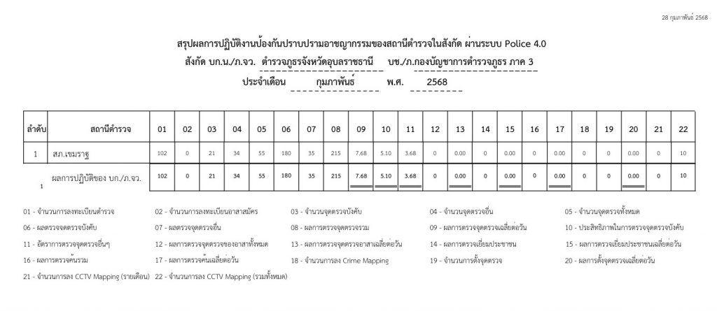 การตั้งจุดตรวจจุดสกัดป้องกันอาชญากรรม ช่วงวันที่ 1 – 28 ก.พ. 2568 ร้อยเวร 2-0 สายตรวจรถยนต์ ได้ร่วมกันตั้งจุดตรวจ/จุดสกัดเพื่อป้องกันการลักลอบกระทำผิดกฎหมายทุกประเภท รวมไปถึงการแสดงกำลังเพื่อป้องกันการก่ออาชญากรรมต่างๆ