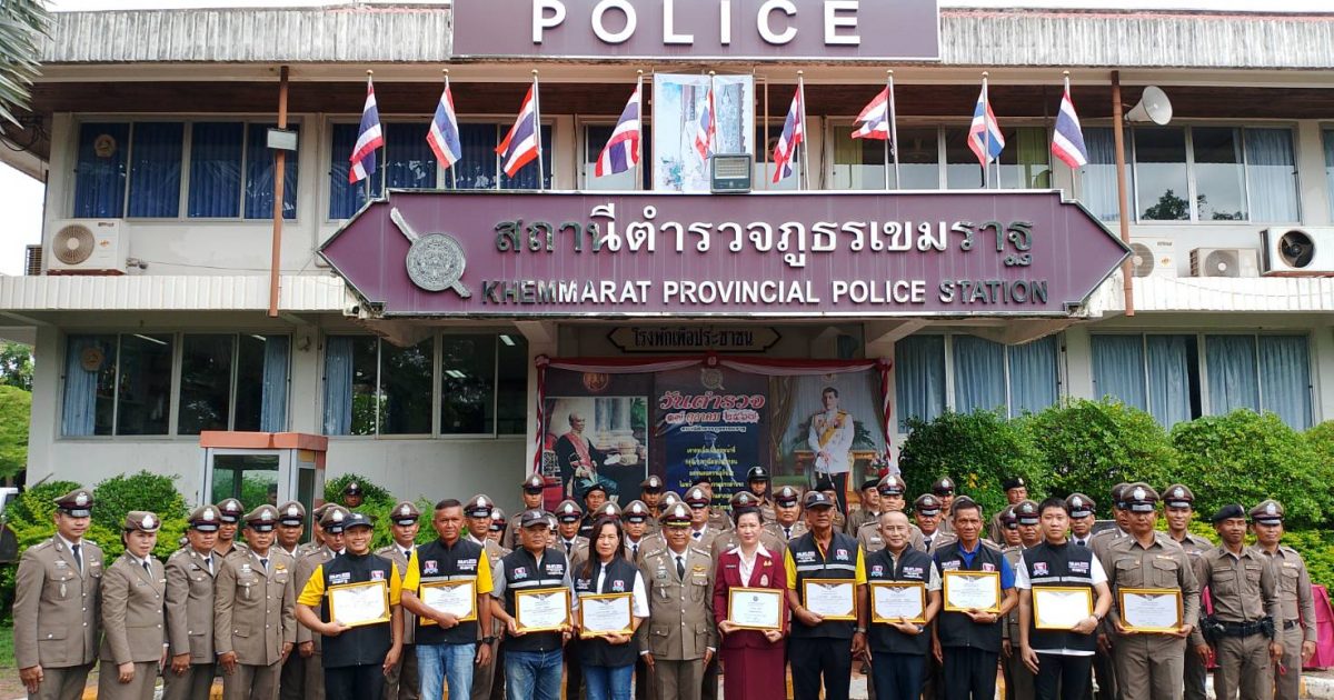 เวลาประมาณ 08.00 น. ข้าราชการตำรวจฯ พร้อมกันบริเวณหน้าที่ทำการ สภ.เขมราฐ ร่วมเข้าแถวเคารพธงชาติ ,สวดมนต์ไหว้พระ ,กล่าวคำสัตย์ปฏิญาณ ,กล่าวคำอุดมคติตำรวจ ,ผกก.ฯ อ่านสาร ผบ.ตร. และพิธีมอบเกียรติบัตร