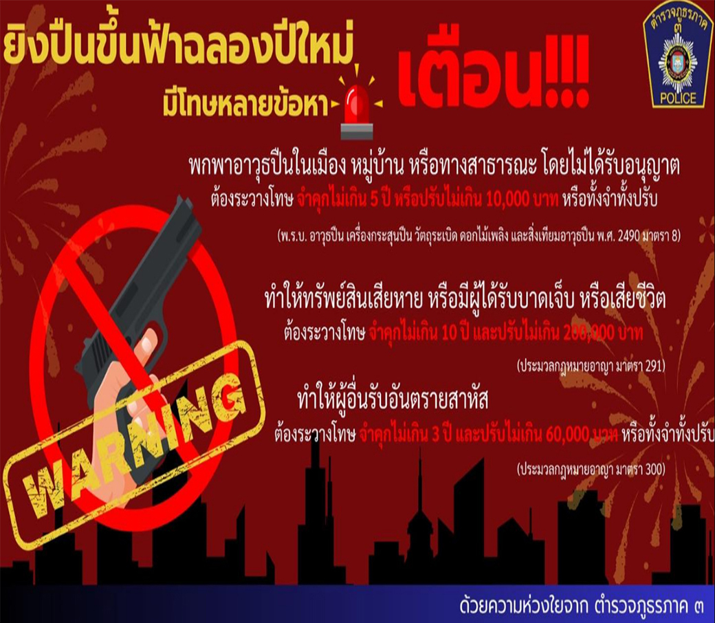 เตือน ฉลองปีใหม่แบบคึกคะนอง ด้วยการ “ยิงปืนขึ้นฟ้า” อาจก่ออันตรายถึงชีวิตและทรัพย