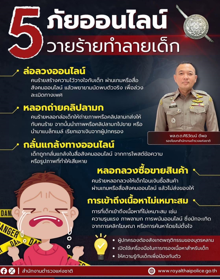 สำนักงานตำรวจแห่งชาติ จึงขอเตือนภัยพี่น้องประชาชน โดยเฉพาะพ่อแม่ผู้ปกครอง ที่มีบุตรหลานอยู่ในคว