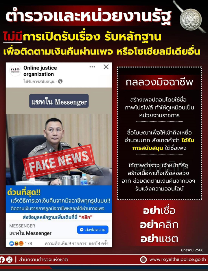 เพจแบบนี้ ปลอม 100% ตำรวจและหน่วยงานรัฐ ไม่มีการเปิดรับเรื่อง รับหลักฐานเพื่อติดตามเงินคื